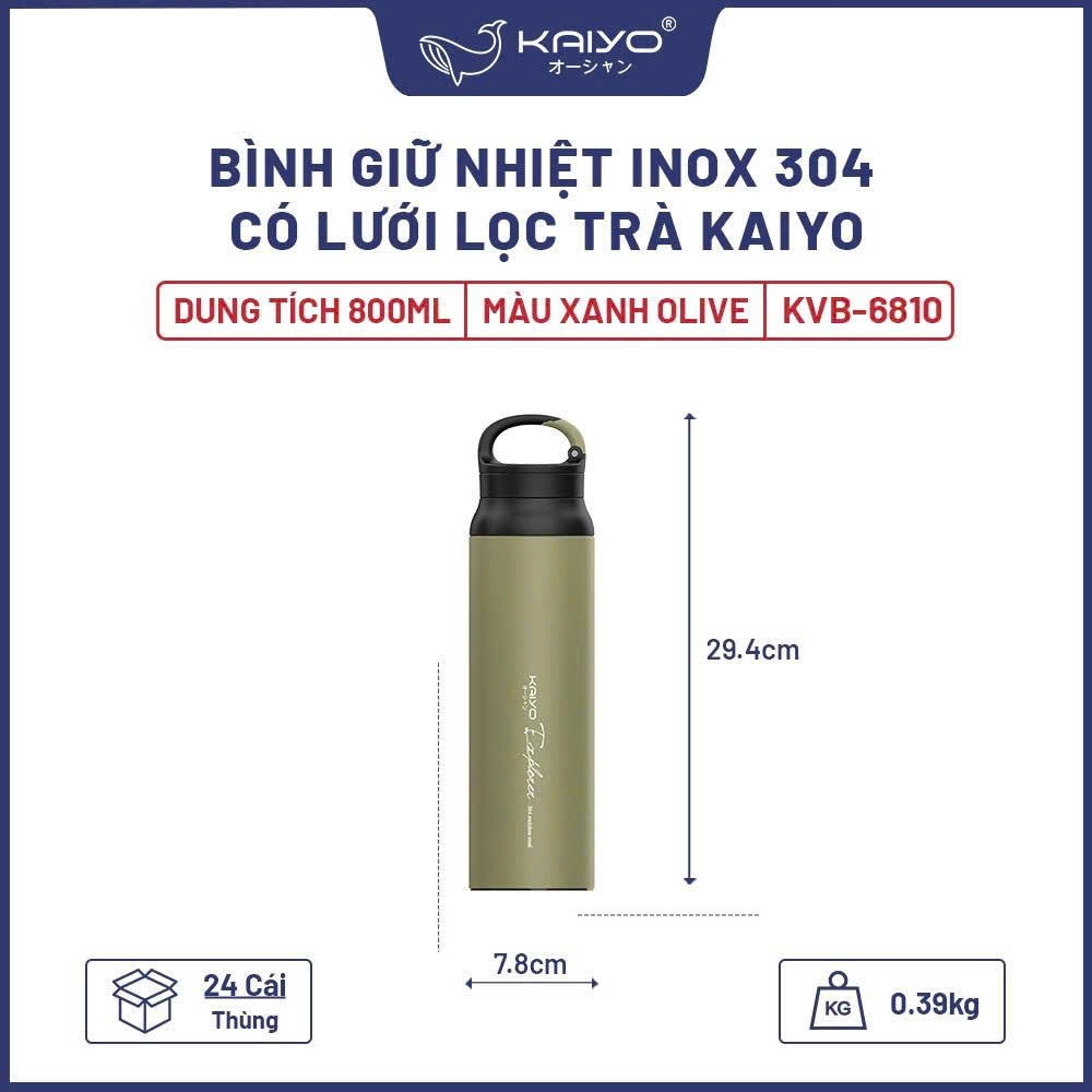 Bình giữ nhiệt inox 304 có lưới lọc trà Kaiyo, dung tích 800ml được trang bị công nghệ giữ nhiệt chân không hiện đại giúp giữ nhiệt độ nóng/lạnh của đồ uống bên trong lên tới 12 giờ, đi kèm lưới lọc trà tiện lợi đảm bảo người sử dụng sẽ có những cốc trà, đồ uống nóng hổi/mát lạnh khi đi làm, đi học, đi chơi hay du lịch.