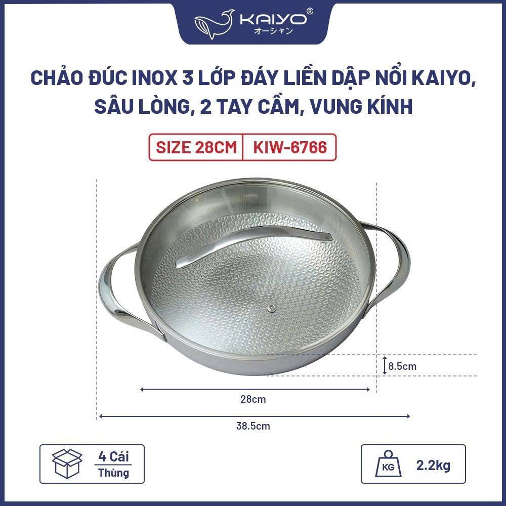 + Chất liệu inox 304 chuẩn xịn, độ dầy 2.5mm với thiết kế độc quyền về kiểu dáng siêu đẹp thuộc BST Silver Crown của nhà Kaiyo. Cán và quai cầm đều đúc đặc nguyên khối đẳng cấp.