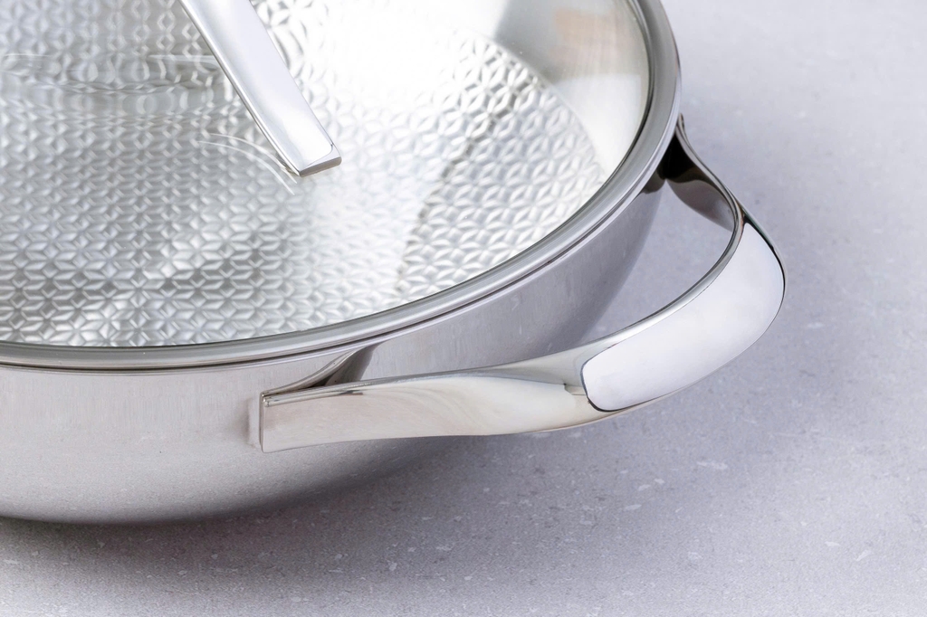 + Công nghệ lòng chảo dập nổi cao cấp, giúp chiên xào thực phẩm không cần tốn nhiều dầu mỡ mà vẫn đảm bảo dộ thơm ngon, tròn vị.