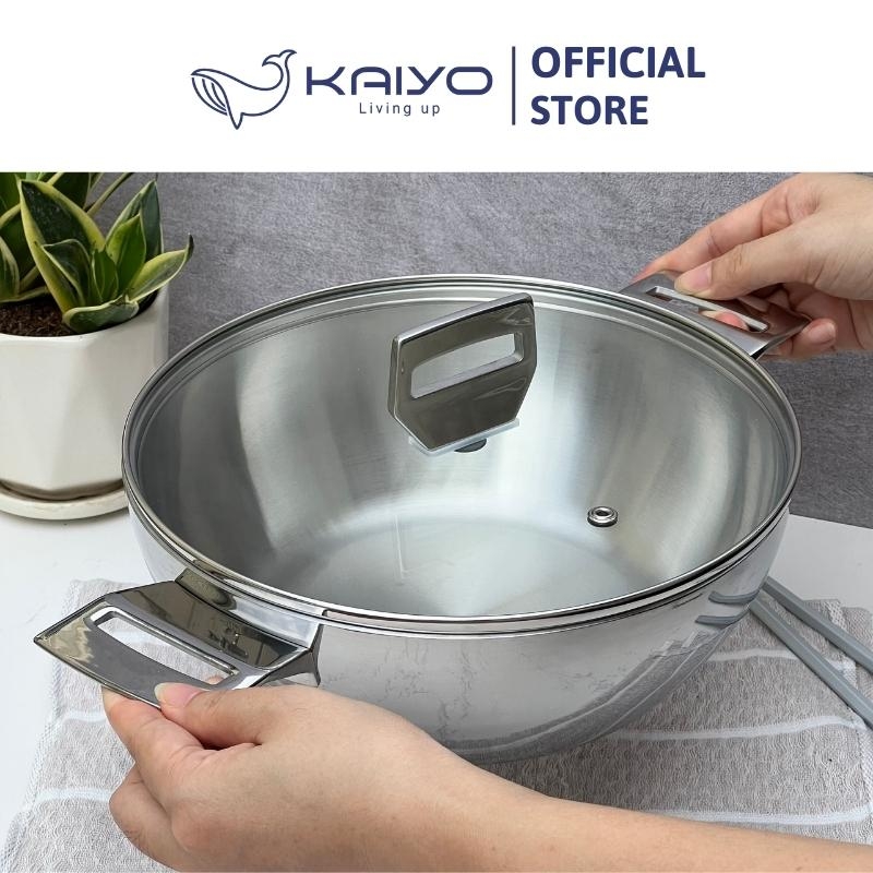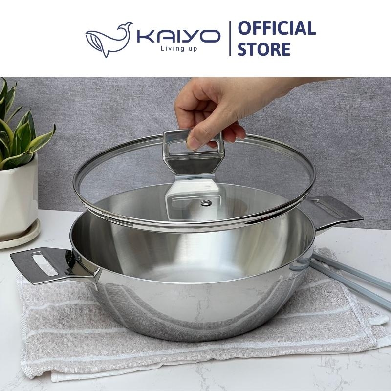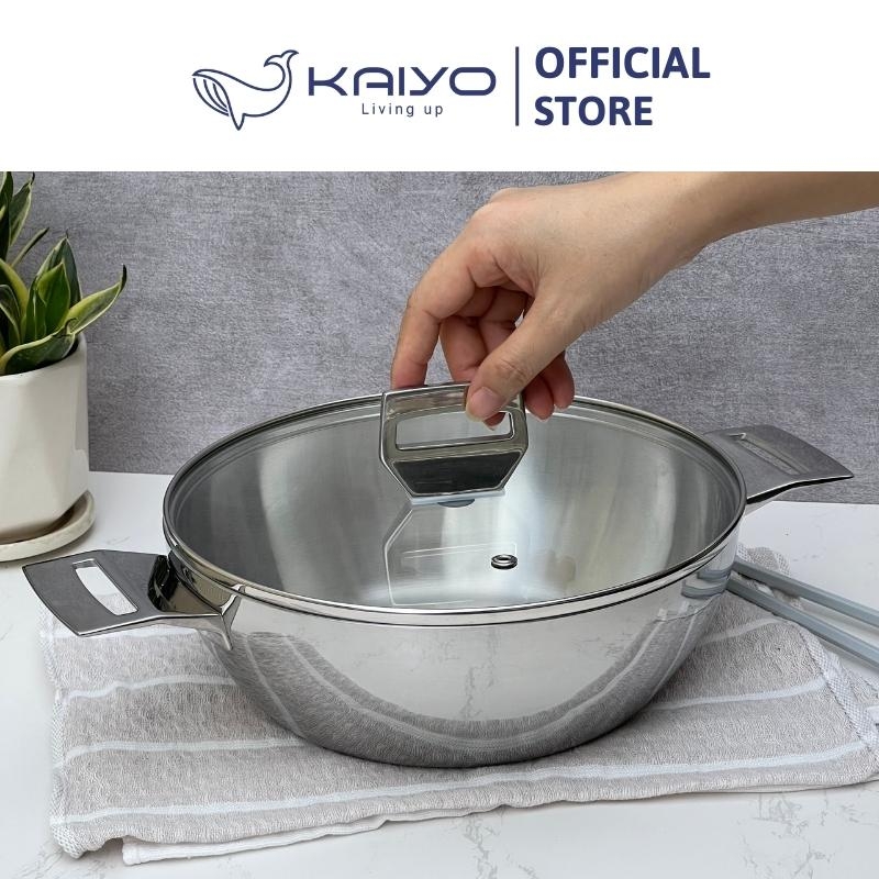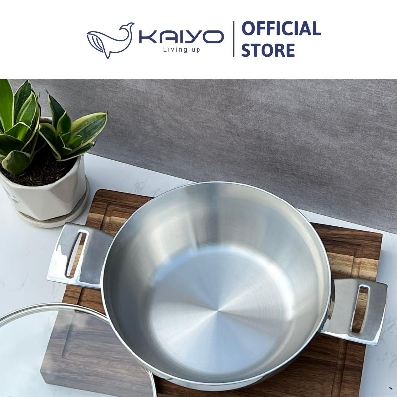 Nồi Chảo inox Tri-Ply Kaiyo được đúc 3 lớp, thân đáy liền với các chất liệu inox, nhôm cao cấp cùng tay cầm chống nóng, đúc đặc giúp dễ dàng chế biến các món ăn siêu ngon mà tiết kiệm tối đa nhiên liệu và thời gian khi nấu; có thể sử dụng trên mọi loại bếp.