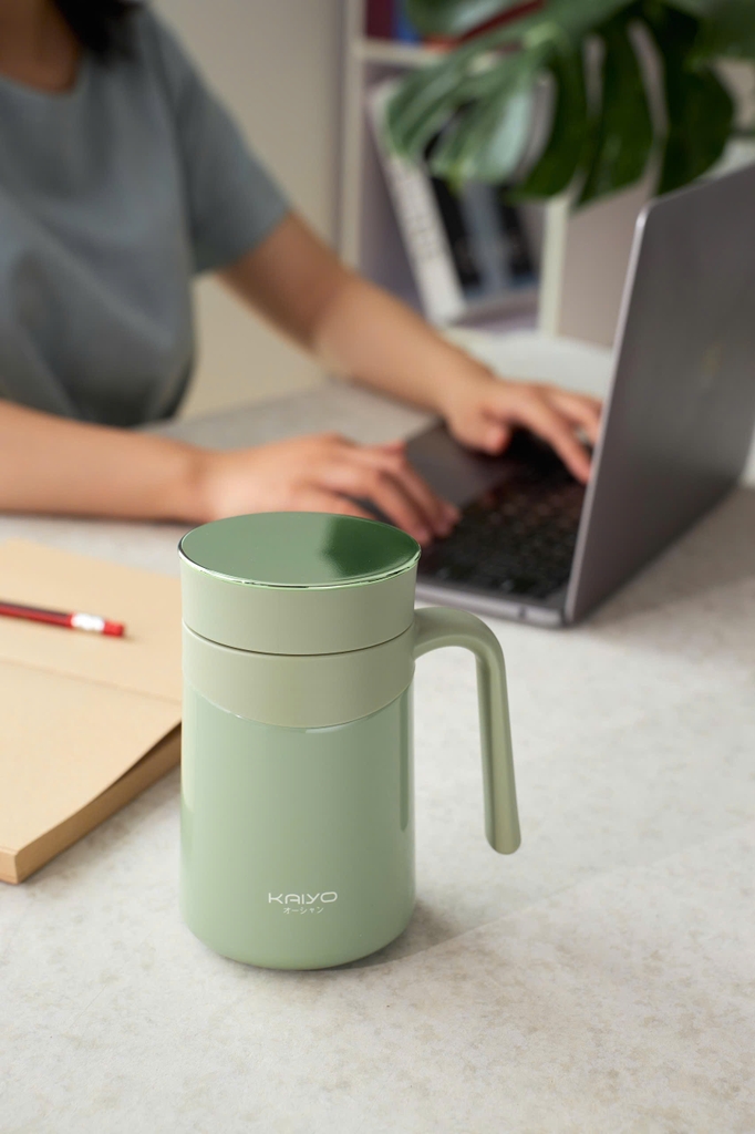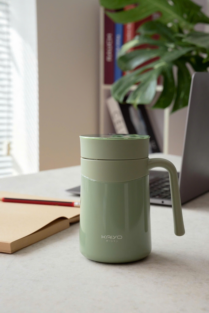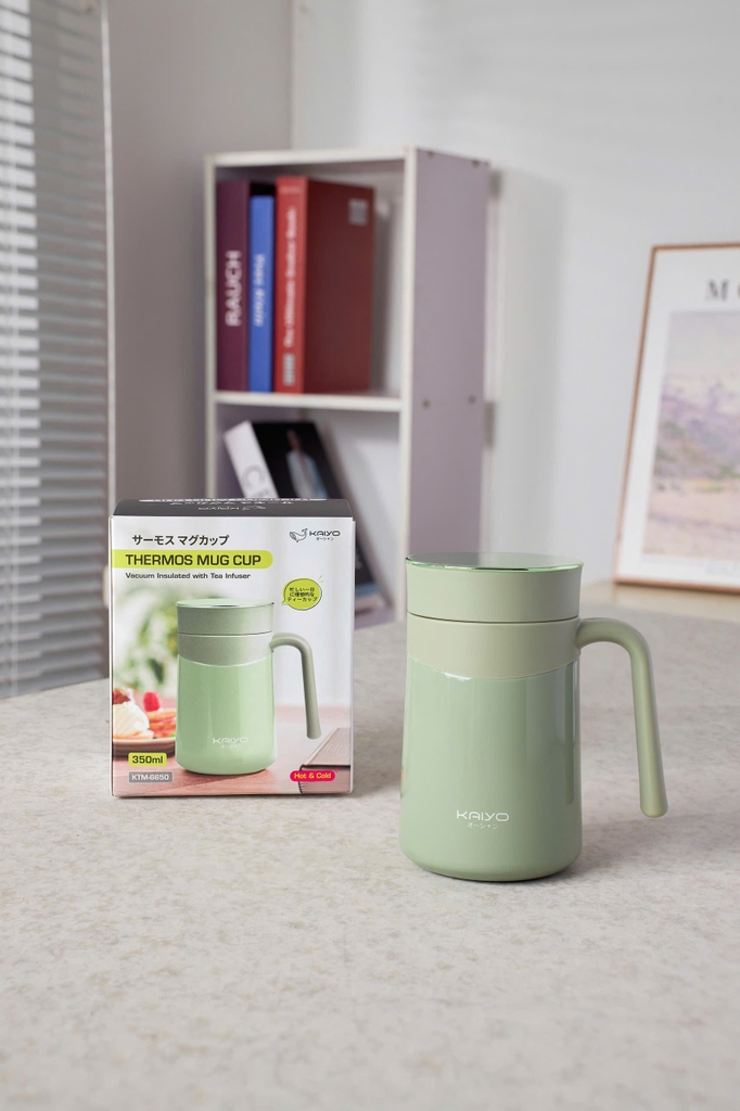 Cốc giữ nhiệt Kaiyo (dung tích 350ml) được trang bị công nghệ giữ nhiệt chân không hiện đại giúp giữ nhiệt độ nóng/lạnh của đồ uống bên trong lên tới 8 giờ, đi kèm 01 lõi lọc trà inox 304 đảm bảo người sử dụng sẽ có những cốc trà, cà phê nóng hổi/mát lạnh khi đi làm, đi học, đi chơi hay du lịch.