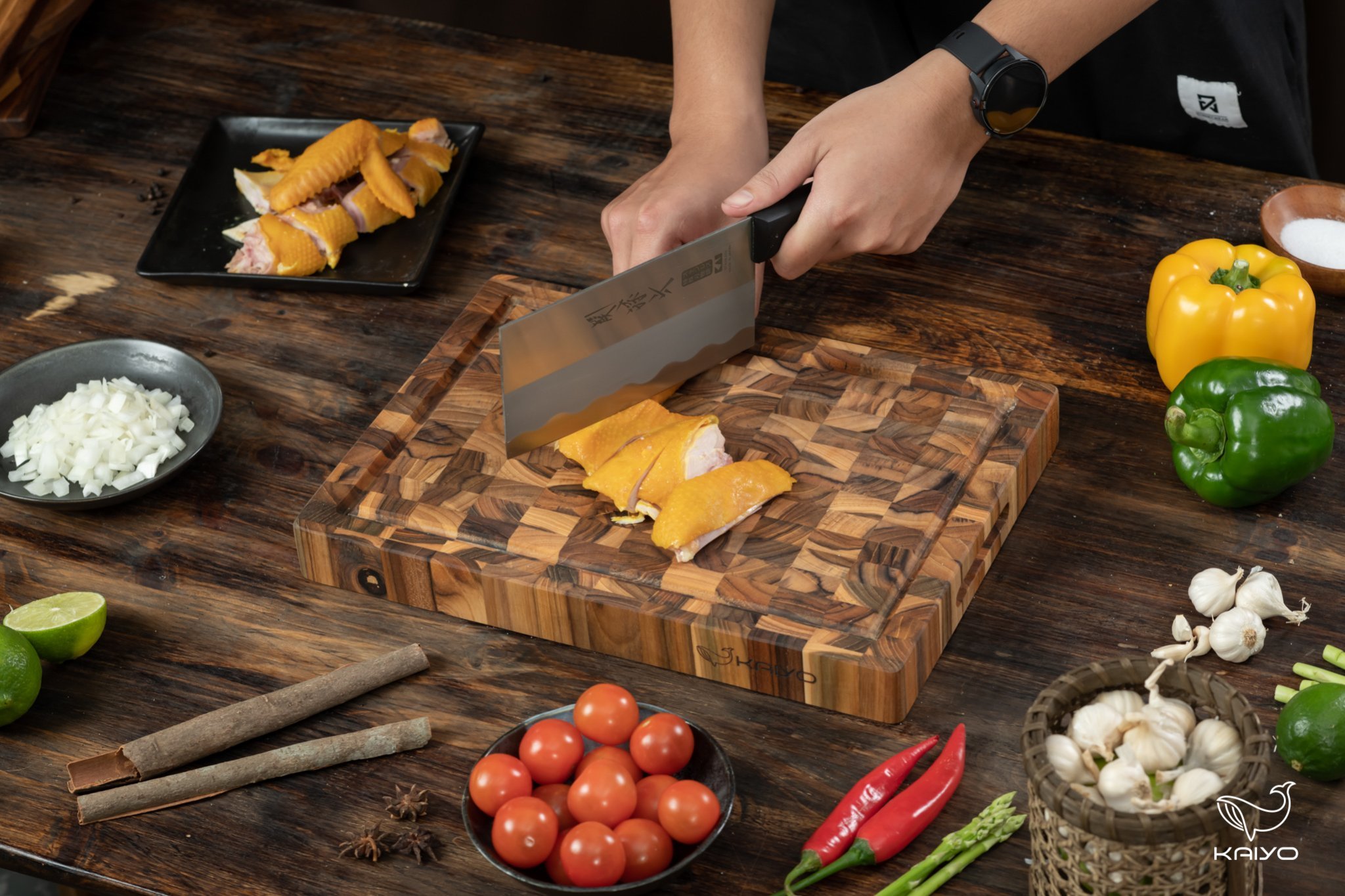 - Không băm chặt các loại thực phẩm trọng lượng lớn trên thớt gỗ Teak;