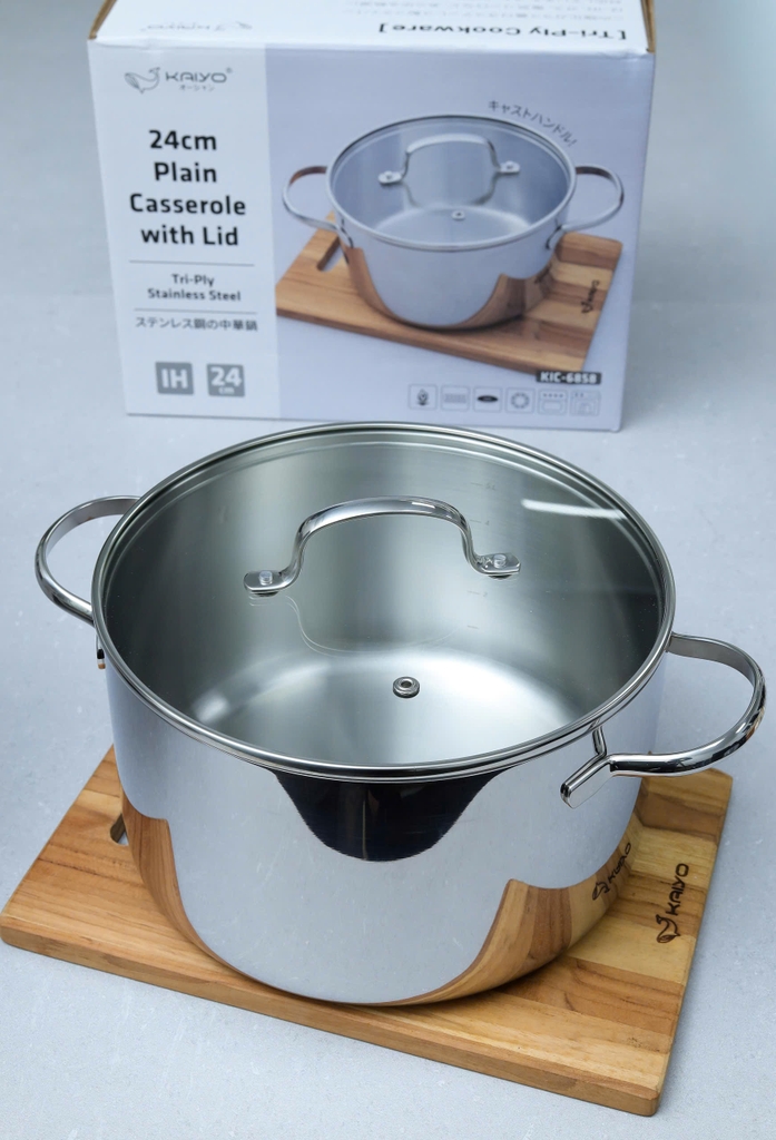 Nồi Inox Tri-Ply thân đáy liền Kaiyo được đúc 3 lớp, thân đáy liền với các chất liệu inox, nhôm cao cấp cùng tay cầm chống nóng, đúc đặc giúp dễ dàng chế biến các món ăn siêu ngon mà tiết kiệm tối đa nhiên liệu và thời gian khi nấu; có thể sử dụng trên mọi loại bếp.