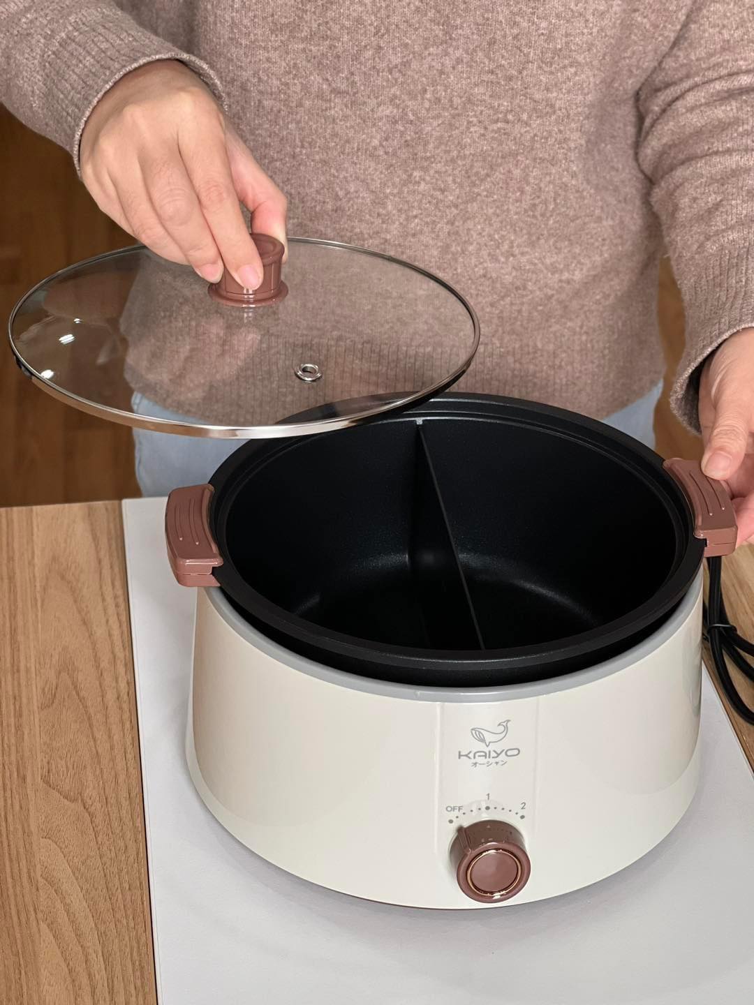Nồi lẩu điện hai ngăn Kaiyo có thiết kế ấn tượng với hai ngăn hoà quyện tượng trưng theo hình thái cực mang lại ý nghĩa may mắn cho gia chủ. Trong cùng một khuân nồi có hai ngăn riêng biệt giúp bạn và gia đình có thể chế biến hai món lẩu một lúc như lẩu thái, lẩu hải sản … hoặc cùng một loại nước dùng nhưng một bên cay, một bên không cay, đáp ứng khẩu vị của mọi thành viên trong gia đình. Hãy cùng chúng tôi tìm hiểu top 5 lý do nên trang bị nồi lẩu điện hai ngăn Kaiyo cho gia đình nhé!