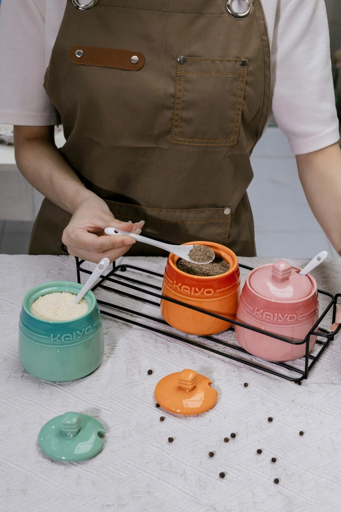 Set 03 hũ gốm đựng gia vị Rainbow Kaiyo được làm bằng gốm sứ cao cấp an toàn cho sức khoẻ, có độ bền cao, thích hợp để đựng gia vị, hành khô, lạc vừng, đậu đỗ, mỡ,... và nhiều loại thực phẩm khác.